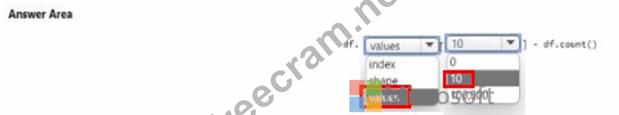 You load data from a notebook in an Azure Machine Learning workspace into a panda's cat frame. The data contains 10.000 records. Each record consists of 10 columns.
