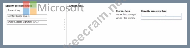 You need to configure a security access method used to register the Azure Blob and azure files storage in workspace1.