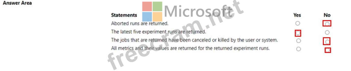 Question 161: You have an Azure Machine Learning workspace. You run the fo...