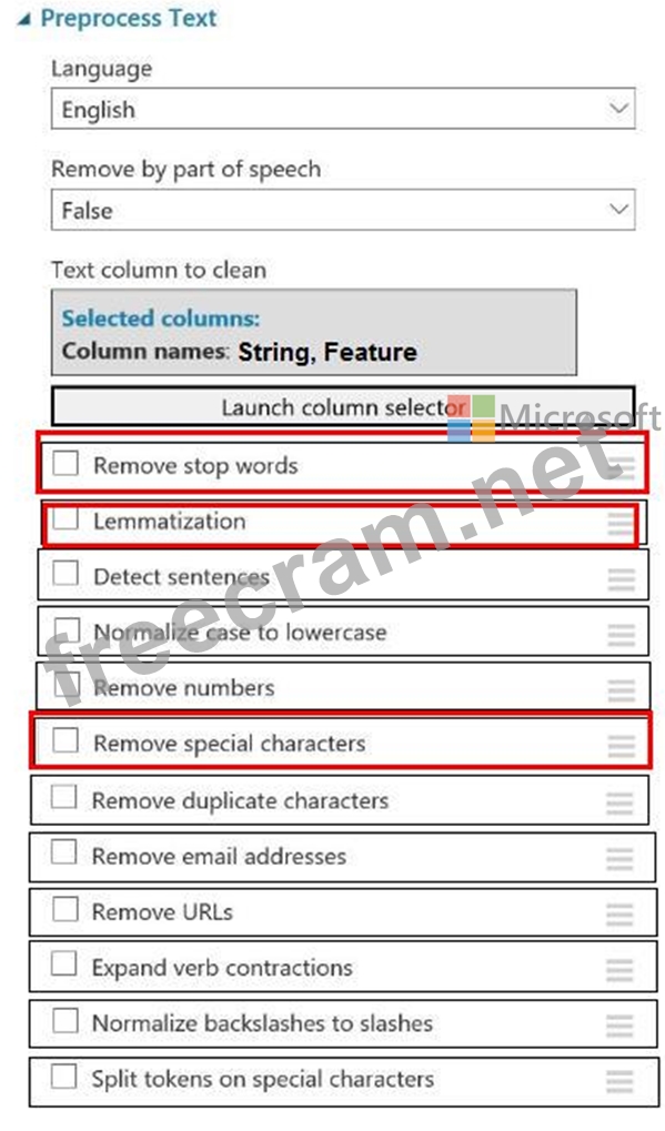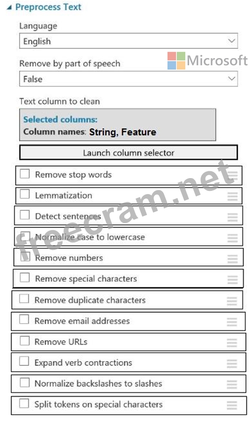 You need to configure the Preprocess Text module to meet the following requirements: