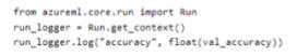 You use the following training script m Python to log an accuracy value.