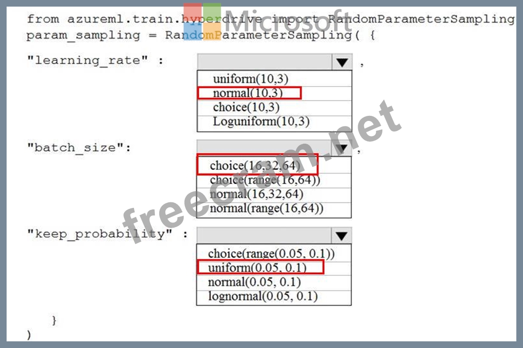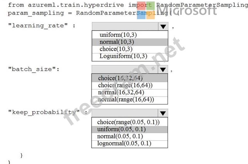 You must define the hyperparameter space to automatically tune hyperparameters using random sampling according to following requirements: