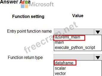 You create an Azure Machine Learning dataset containing automobile price data The dataset includes 10,000 rows and 10 columns You use Azure Machine Learning Designer to transform the dataset by using an Execute Python Script component and custom code.