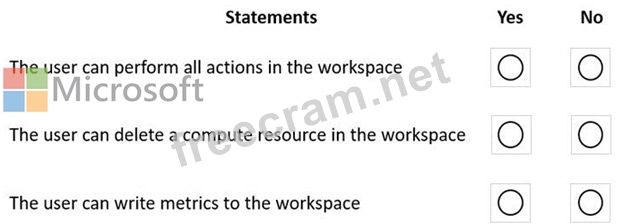 You create an Azure Machine Learning workspace named workspace1. You assign a custom role to a user of workspace1.