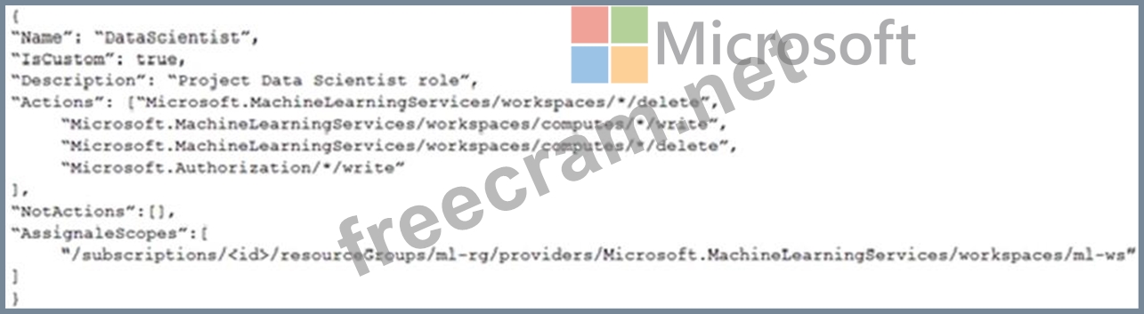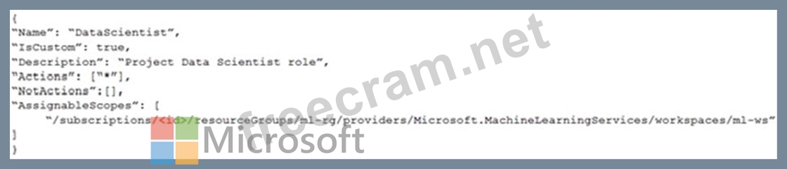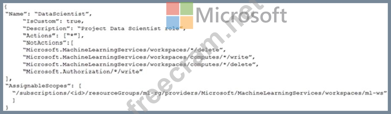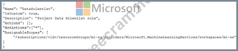 You need to create a JSON file for the DataScientist role in the Azure Machine Learning workspace.