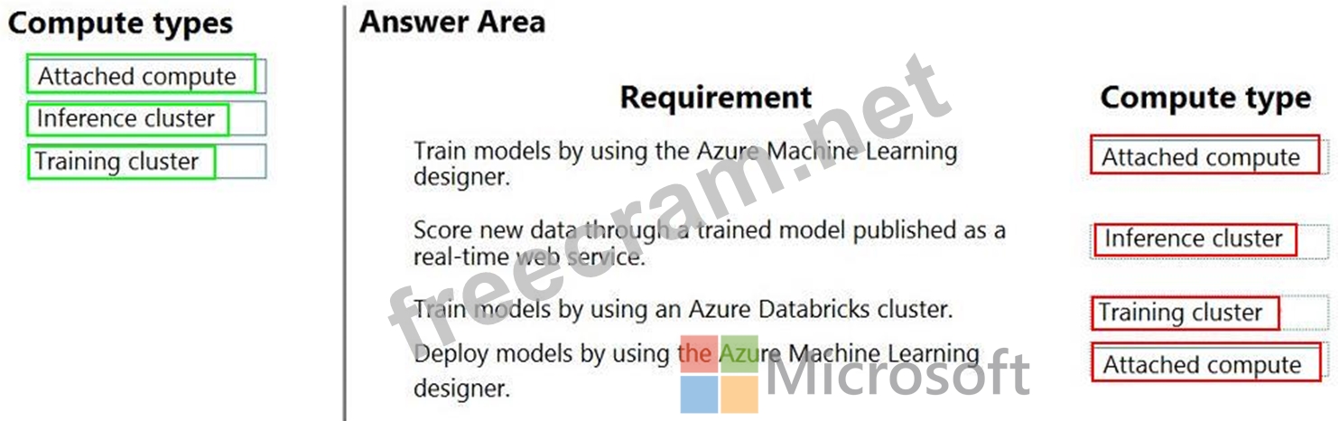 Which compute types should you select? To answer, drag the appropriate compute types to the correct requirements. Each compute type may be used once, more than once, or not at all. You may need to drag the split bar between panes or scroll to view content.