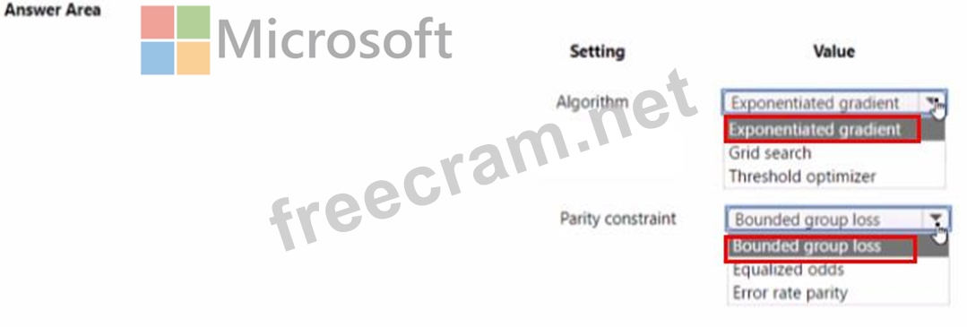Which algorithm and panty constraint should you use? To answer, select the appropriate options in the answer are a. NOTE: Each correct selection is worth one point.