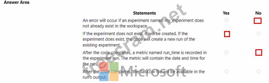 Question 95: You run a script as an experiment in Azure Machine Learning....