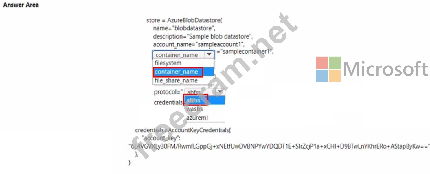 You must register an Azure Blob storage datastore in workspace1 by using an access key. You develop Python SDK v2 code to import all modules required to register the datastore.