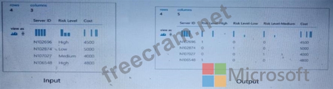 You are developing a machine learning, experiment by using Azure. The following images show the input and output of a machine learning experiment: