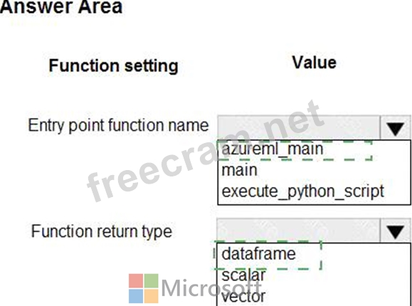You create an Azure Machine Learning dataset containing automobile price data The dataset includes 10,000 rows and 10 columns You use Azure Machine Learning Designer to transform the dataset by using an Execute Python Script component and custom code.