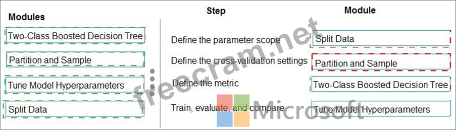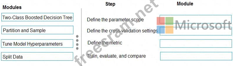 Which module you should use for each step? To answer, drag the appropriate modules to the correct steps.
