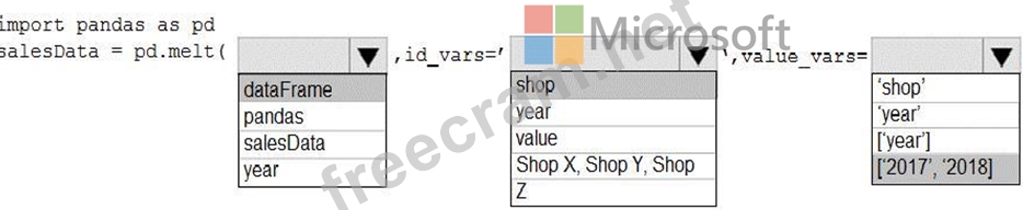 How should you complete the code segment? To answer, select the appropriate options in the answer area.