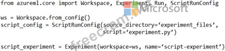 Question 55: You use the Azure Machine Learning SDK to run a training exp...
