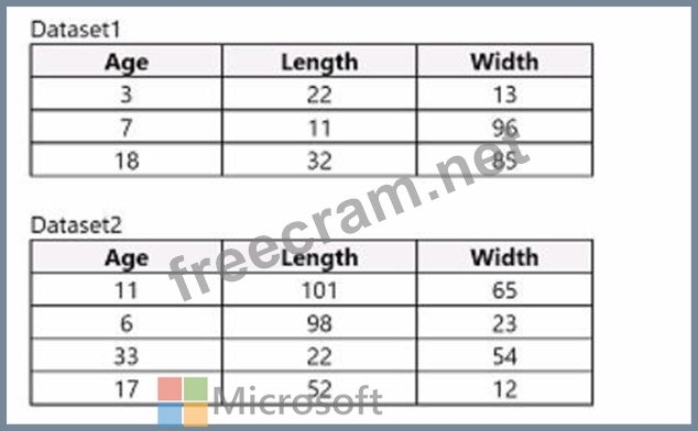 You use Azure Machine Learning designer to load the following datasets into an experiment: