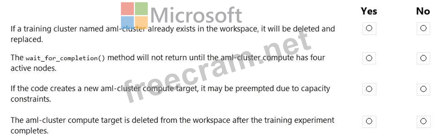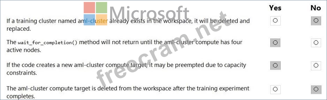 Question 4: You manage an Azure Machine Learning workspace. The developm...