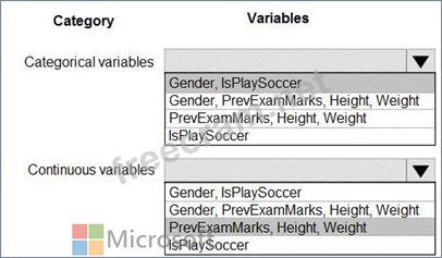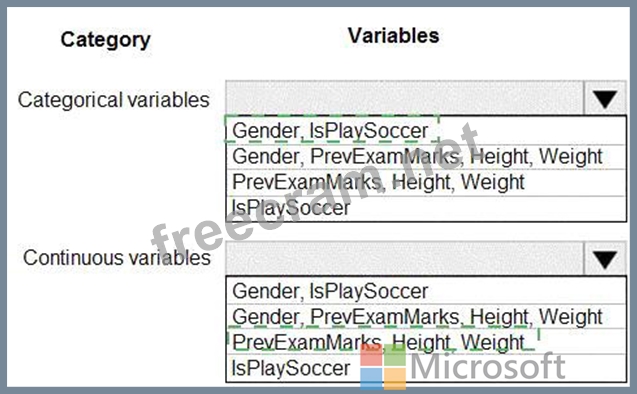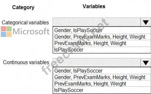 Which variable should you add to each category? To answer, select the appropriate options in the answer area.