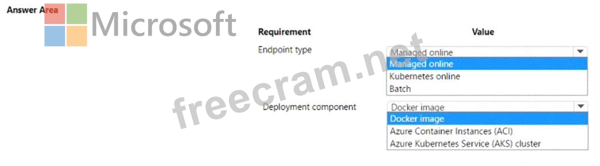 You create an Azure Machine Learning model to include model files and a scorning script. You must deploy the model. The deployment solution must meet the following requirements: