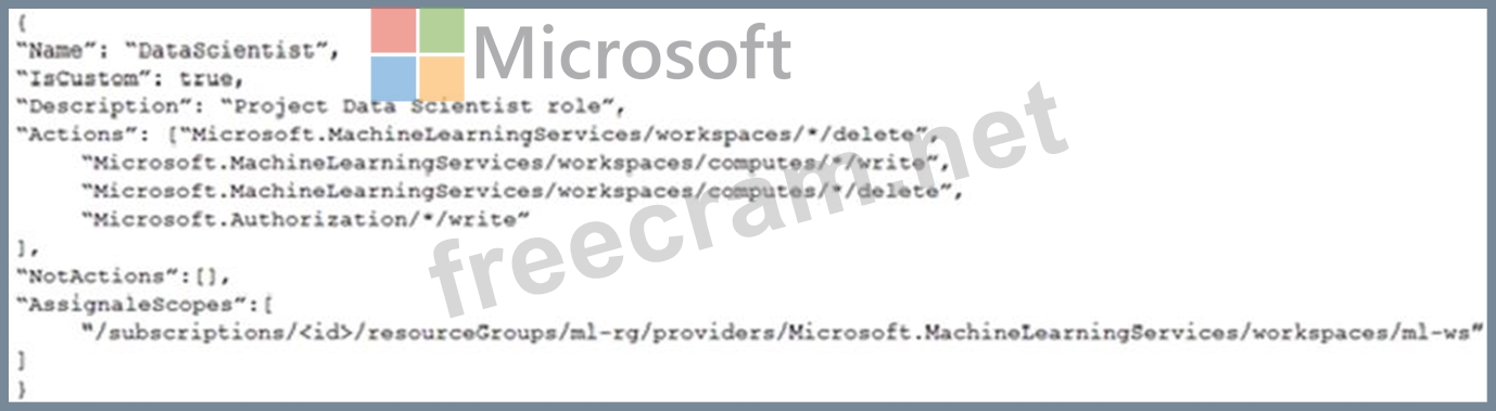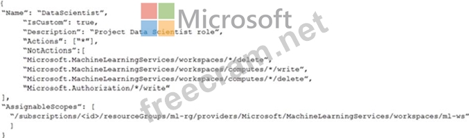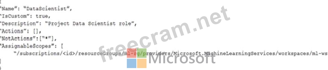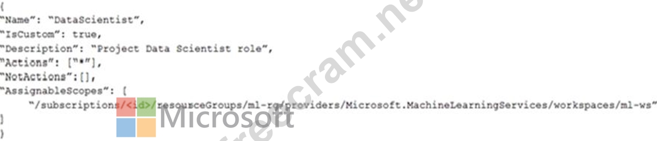 You need to create a JSON file for the DataScientist role in the Azure Machine Learning workspace.