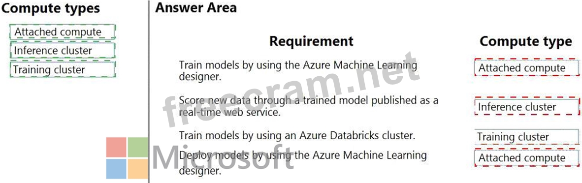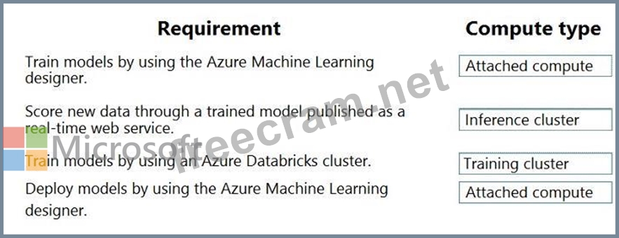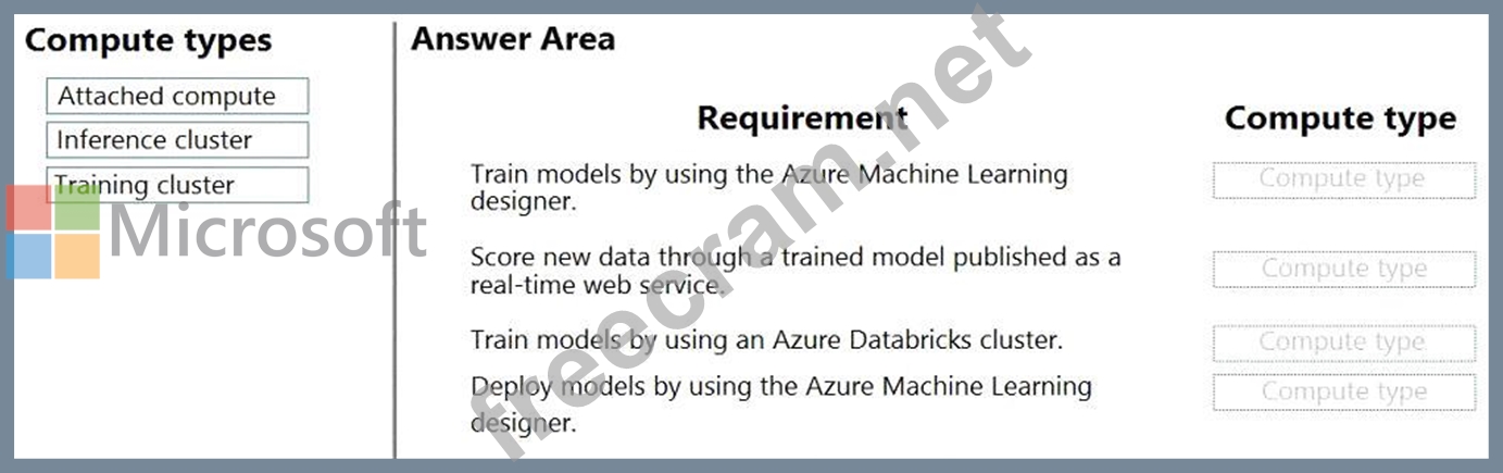 Which compute types should you select? To answer, drag the appropriate compute types to the correct requirements. Each compute type may be used once, more than once, or not at all. You may need to drag the split bar between panes or scroll to view content.