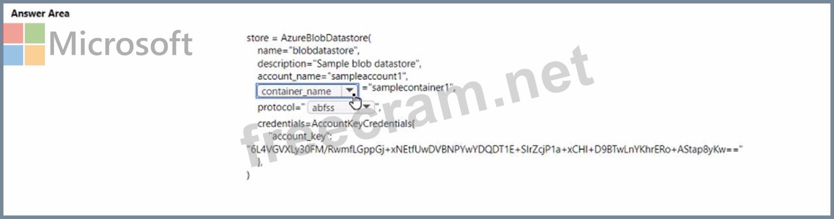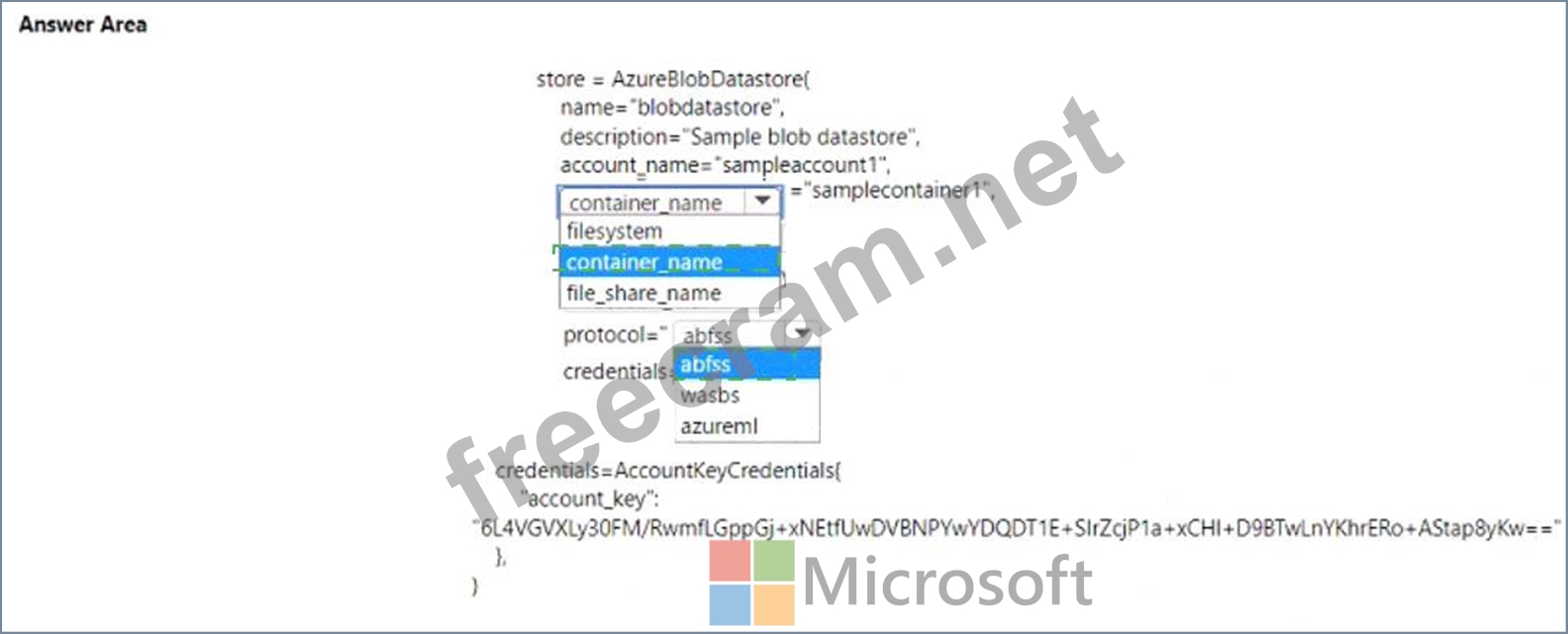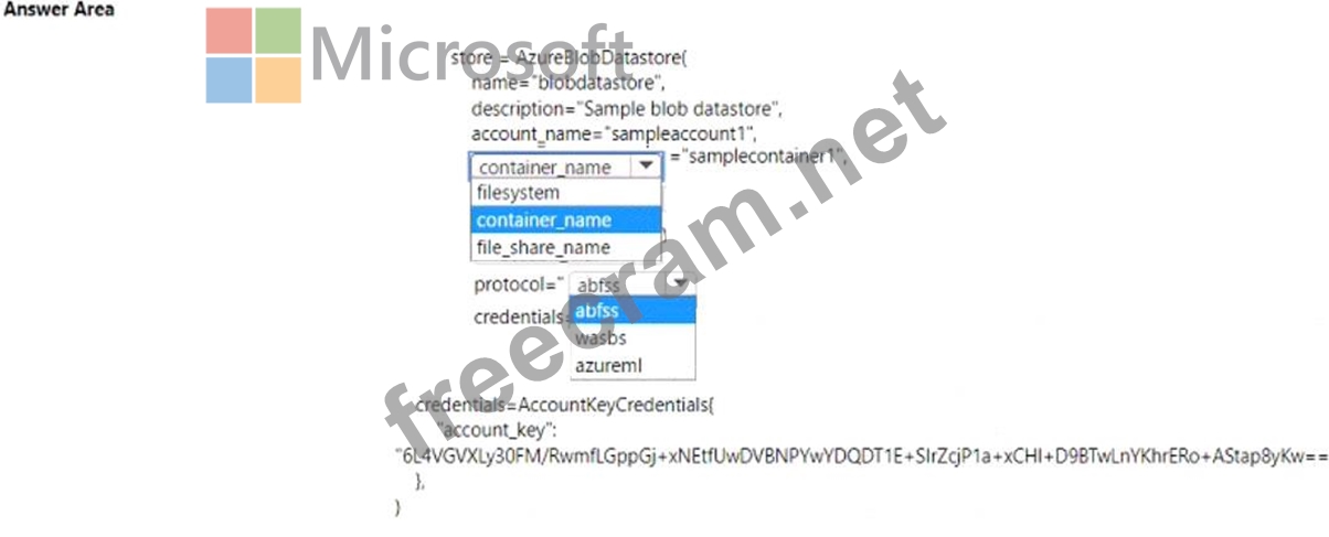 You must register an Azure Blob storage datastore in workspace1 by using an access key. You develop Python SDK v2 code to import all modules required to register the datastore.
