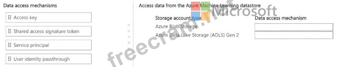 Which data access mechanism should you use? To answer, move the appropriate data access mechanisms to the correct storage types. You may use each data access mechanism once, more than once, or not at all. You may need to move the split bar between panes or scroll to view content.