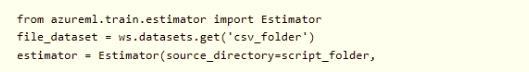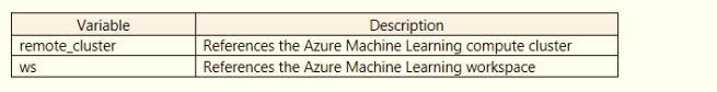 You register a file dataset named csvjolder that references a folder. The folder includes multiple com ma- separated values (CSV) files in an Azure storage blob container. You plan to use the following code to run a script that loads data from the file dataset. You create and instantiate the following variables: