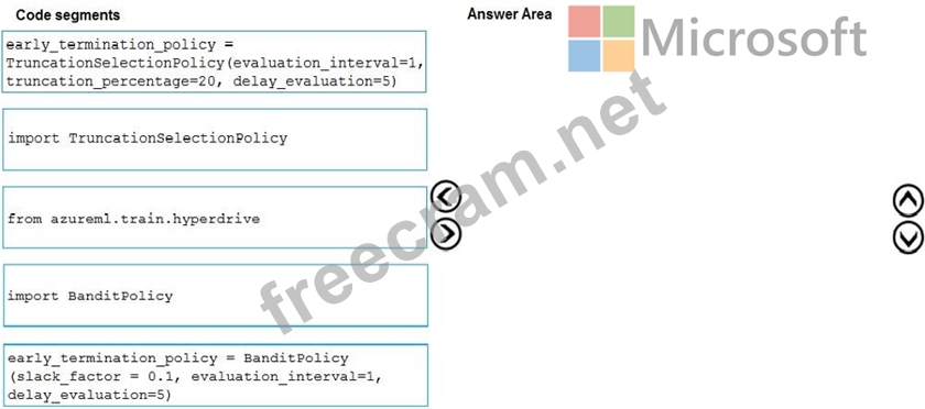 early_termination_policy = TruncationSelectionPolicy(evaluation_interval=1, truncation_percentage=20, delay_evaluation=5) Incorrect Answers: