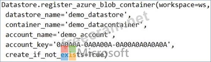 A coworker registers a datastore in a Machine Learning services workspace by using the following code: