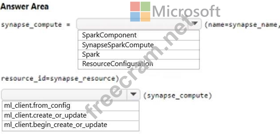 How should you complete the code segment? To answer, select the appropriate options in the answer area.