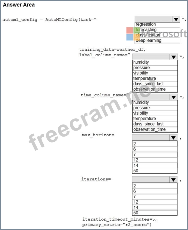 https://docs.microsoft.com/en-us/python/api/azureml-train-automl-client/ azureml.train.automl.automlconfig.automlconfig