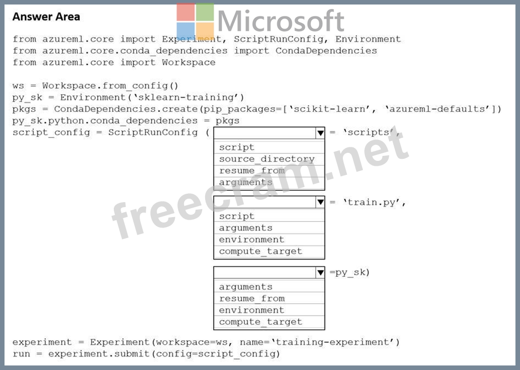 Question 253: Hotspot Question You create a Python script named train.py a...