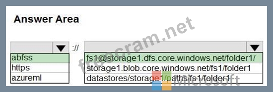 You create an Azure Data Lake Storage Gen2 storage account named storage1containing a file system named fs1 and a folder named folder1.