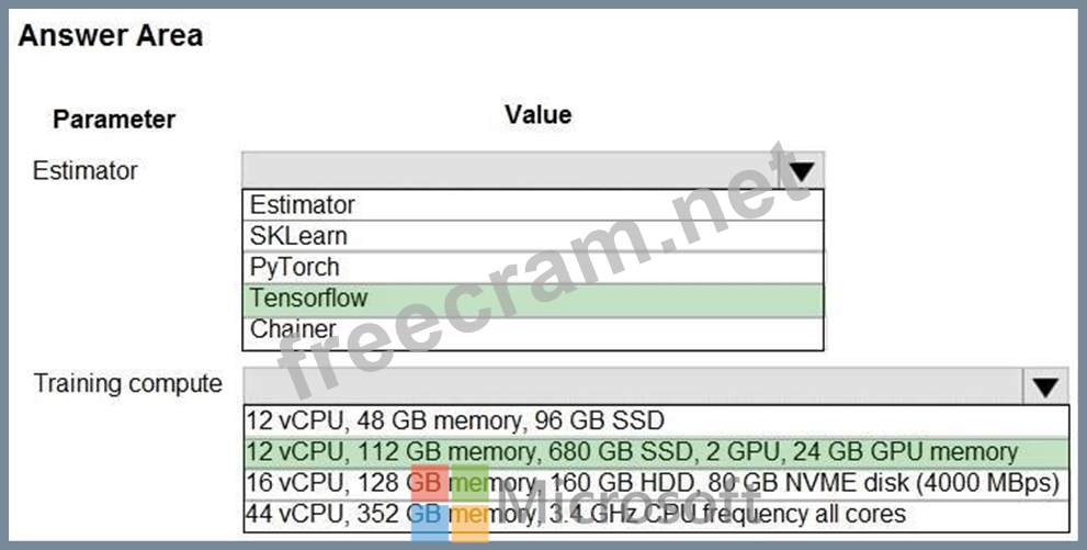 You create an Azure Machine Learning workspace and set up a development environment. You plan to train a deep neural network (DNN) by using the Tensorflow framework and by using estimators to submit training scripts.