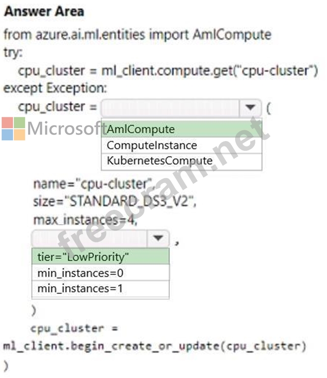 Question 192: Hotspot Question You manage an Azure Machine Learning worksp...