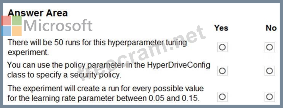 Question 158: You plan to use the Hyperdrive feature of Azure Machine Lear...