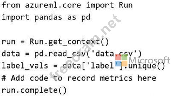 You must add code to the script to record the unique label values as run metrics at the point indicated by the comment.