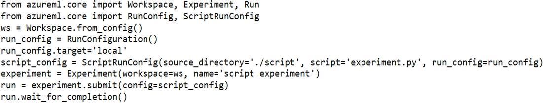 You use the following code to run a script as an experiment in Azure Machine Learning: