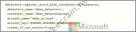 A coworker registers a datastore in a Machine Learning services workspace by using the following code: