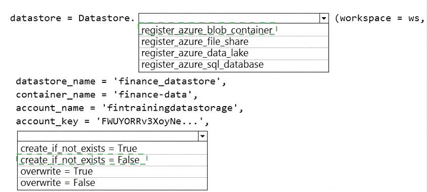 Question 153: You define a datastore named ml-data for an Azure Storage bl...