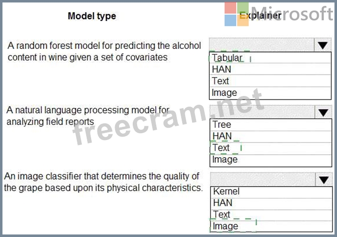 Which explainer modules should you use? To answer, select the appropriate options in the answer area.