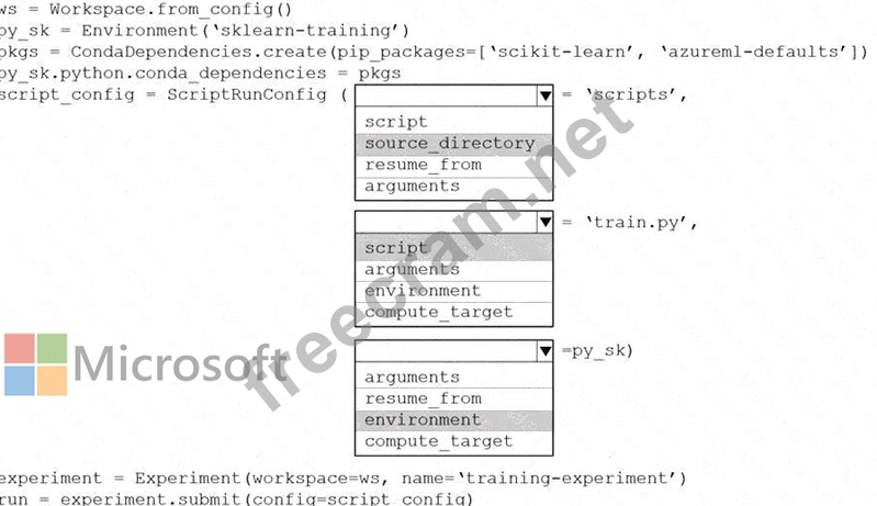 Question 81: You are preparing to use the Azure ML SDK to run an experime...