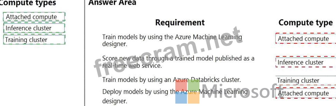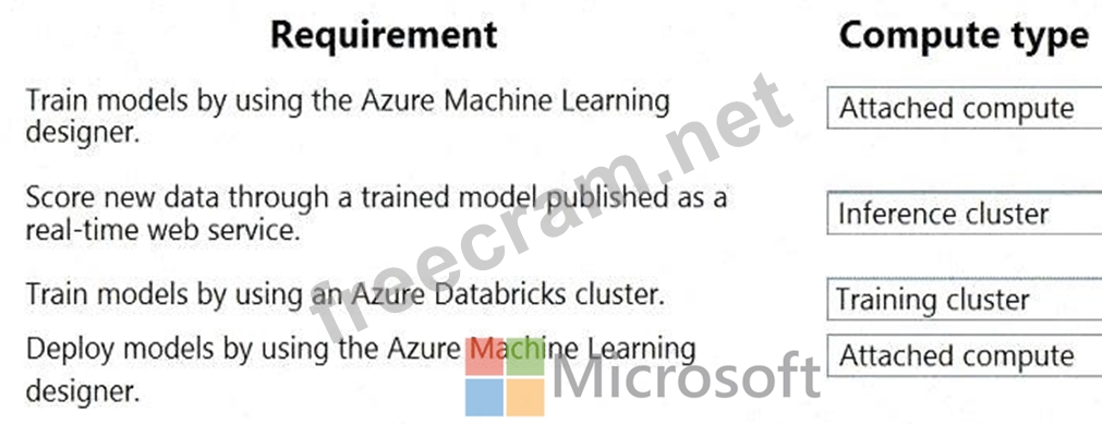Which compute types should you select? To answer, drag the appropriate compute types to the correct requirements. Each compute type may be used once, more than once, or not at all. You may need to drag the split bar between panes or scroll to view content.