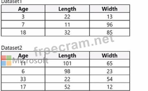 You use Azure Machine Learning designer to load the following datasets into an experiment: