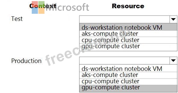 Which compute resources should you use? To answer, select the appropriate options in the answer area.