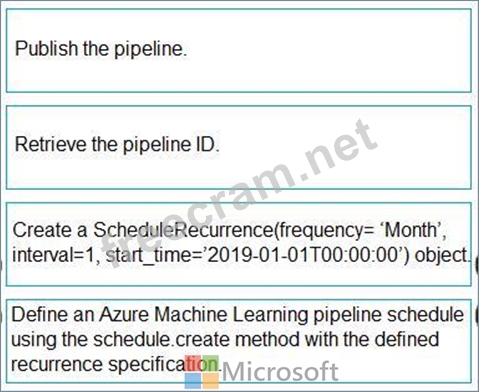 To schedule a pipeline, you'll need a reference to your workspace, the identifier of your published pipeline, and the name of the experiment in which you wish to create the schedule.