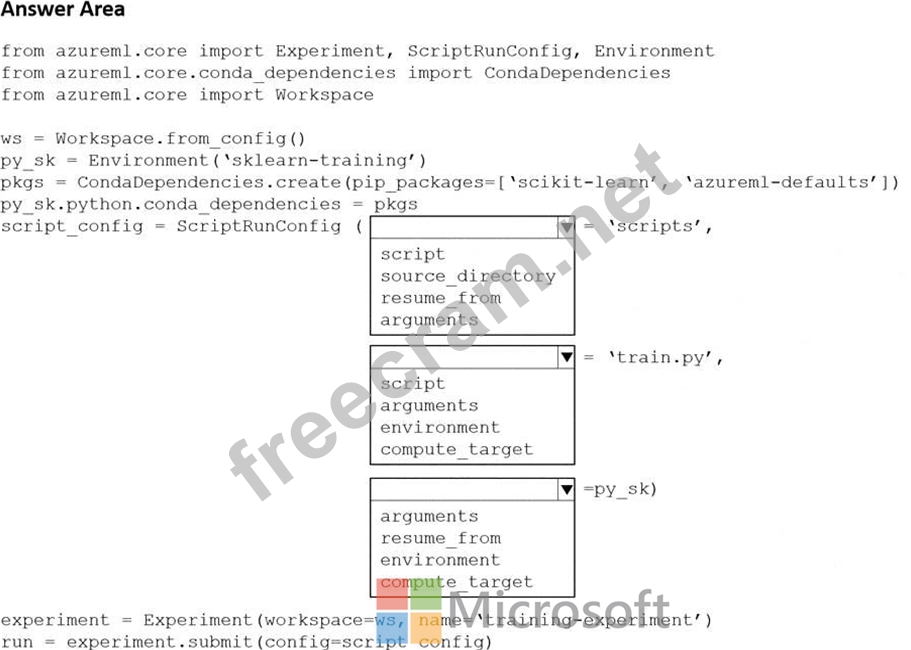 Question 79: You use the Azure Machine learning SDK foe Python to create ...