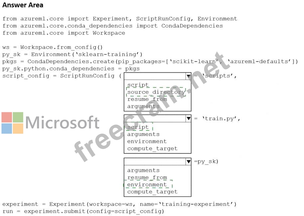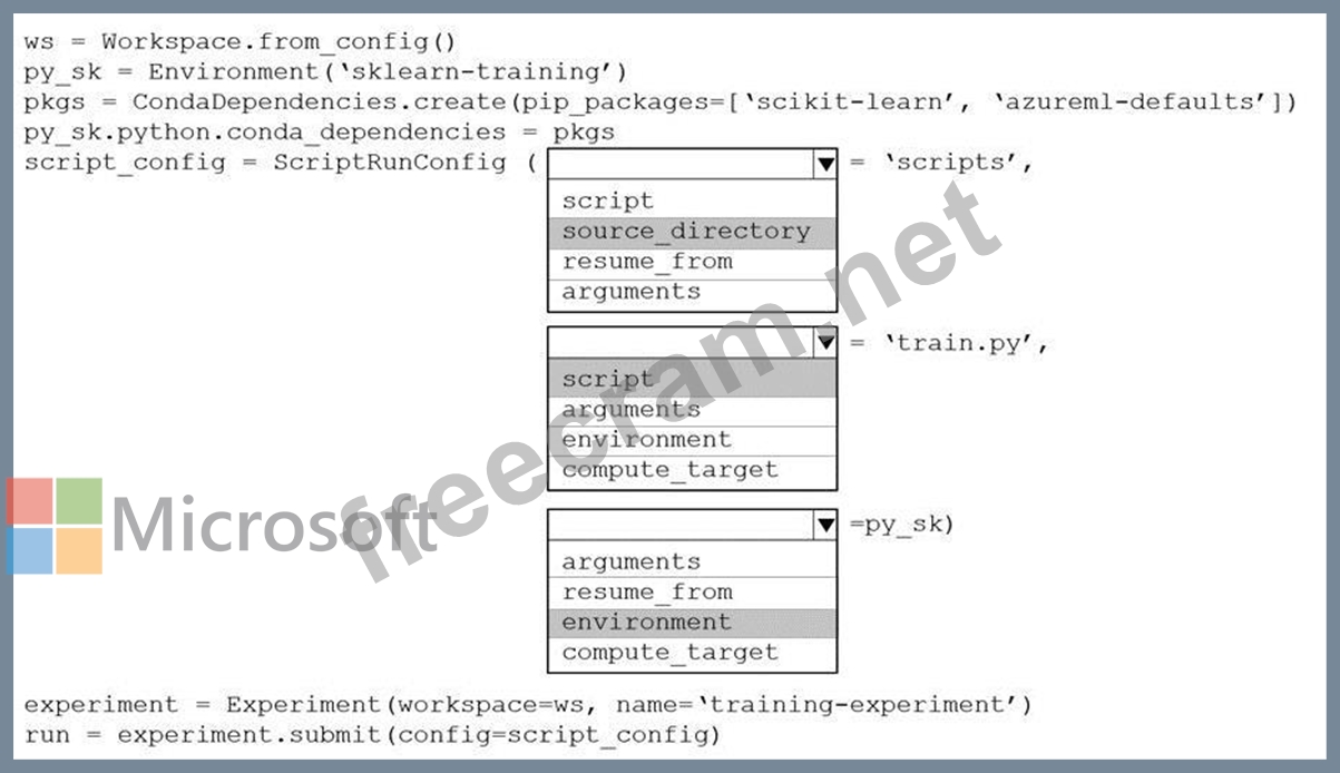 Question 194: You use the Azure Machine Learning SDK in a notebook to run ...