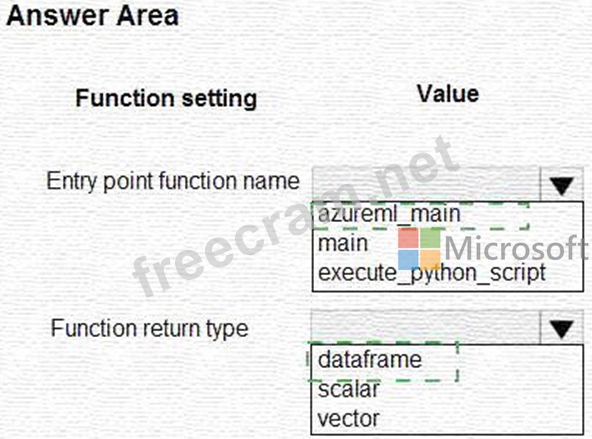 You create an Azure Machine Learning dataset containing automobile price data The dataset includes 10,000 rows and 10 columns You use Azure Machine Learning Designer to transform the dataset by using an Execute Python Script component and custom code.