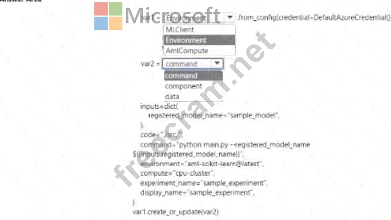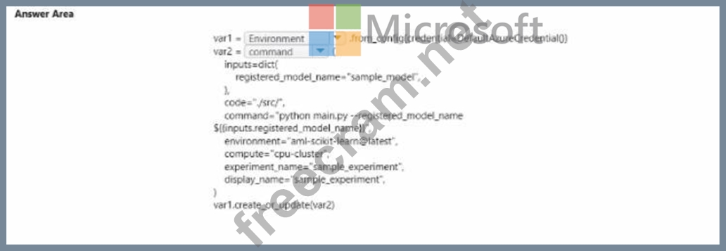 You need to complete the Python SDK v2 code to include a training script. environment, and compute information.